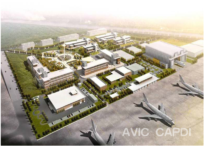 Composición del proyecto: área de transporte de mercancías, área de mantenimiento de aviones, área de Suministro de Alimentos para vuelos, área de oficinas compuestas, área de garantía compuesta y área de capacitación